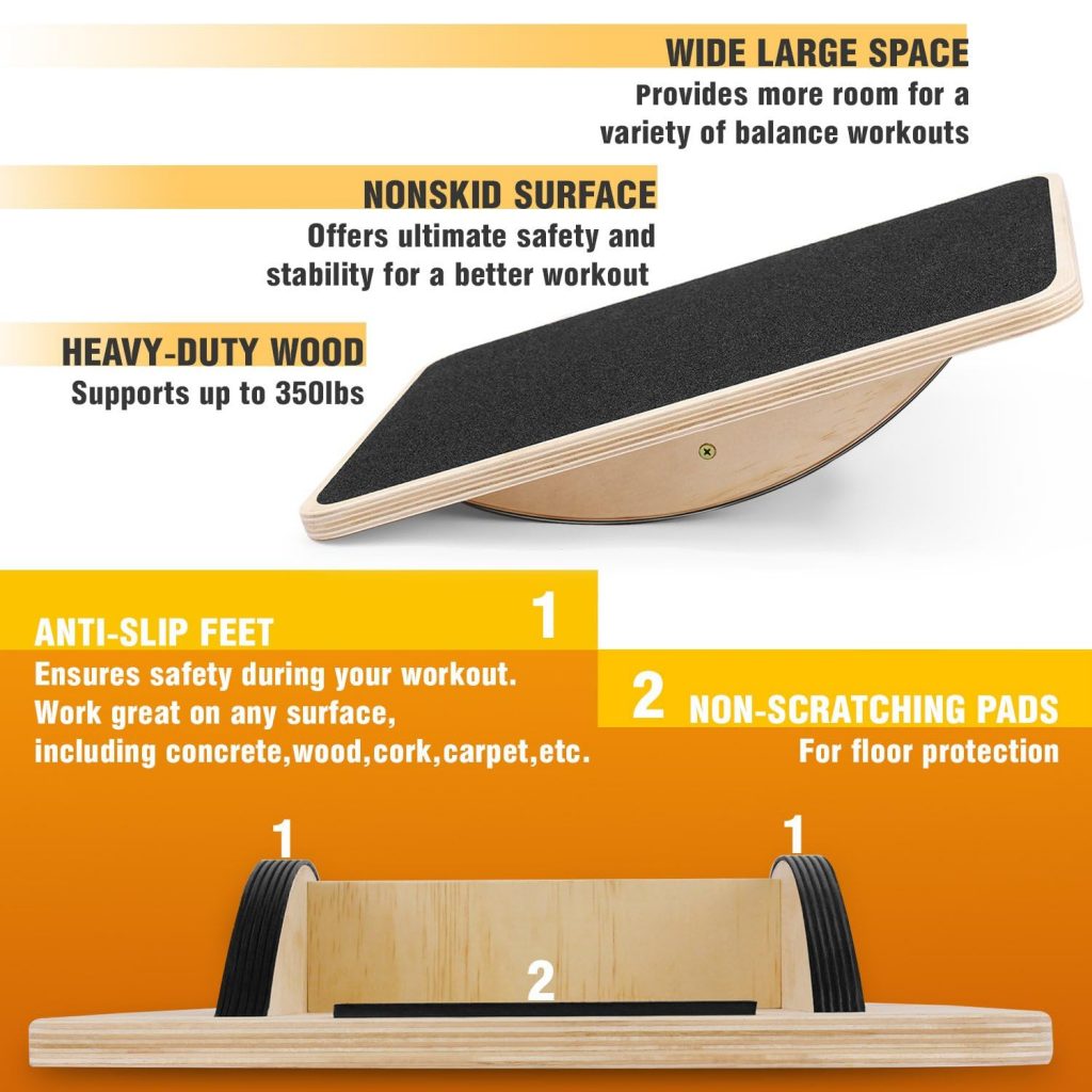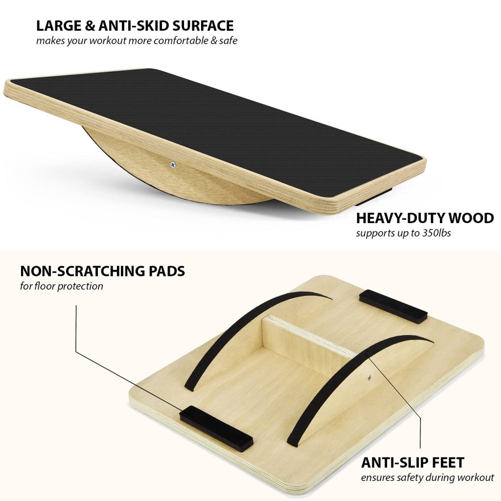- ANTISLIP SURFACE & HIGH DURABILITY: Premium Balance Board Ankle with antiskid pad on the 17,5 inch surface provides better grip during your workout; Rocker Board is built to last, made of high quality heavy duty wood, support up to 350lbs