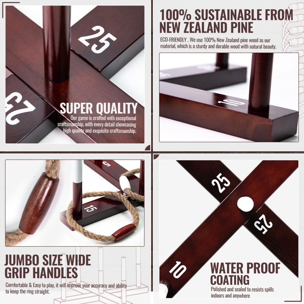【HYPE!!!ALL-AGES TOSS GAME】Rope Ring toss game is a versatile, fun & competitive indoor/yard game for all ages. It’s giving for any outdoor gathering, whether & whenever you’re hosting a barbecue or pool party.