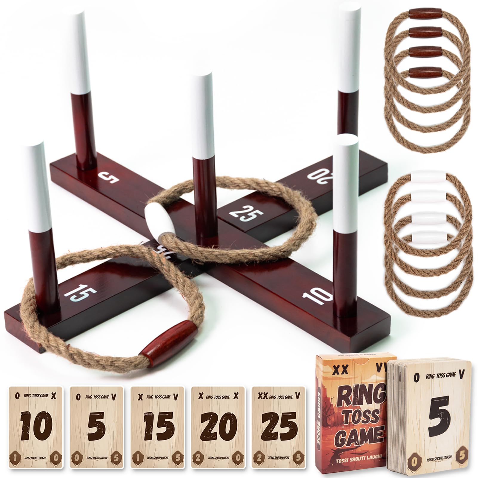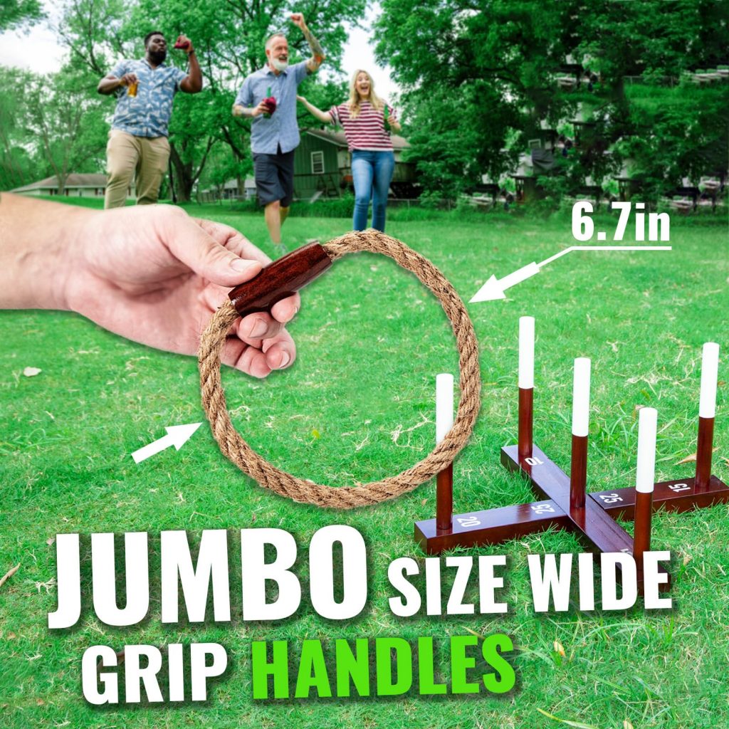 【HYPE!!!ALL-AGES TOSS GAME】Rope Ring toss game is a versatile, fun & competitive indoor/yard game for all ages. It’s giving for any outdoor gathering, whether & whenever you’re hosting a barbecue or pool party.