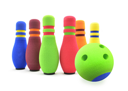 Move-It Development Kids Bowling Set, Designed for Extended Play with “Playbook”, for Toddlers (6 Bowling pins & 1 Ball), Carnival Party Games, Bowling Slip and Slide, Kids Ball Set
