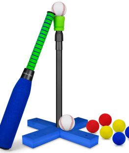 Foam T Ball Kids Baseball Softball Bat Set Adjustable Batting Tee